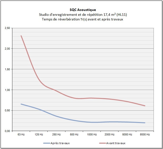 Net surface area: 17.4 m² On those pictures some finishing work remained (baseboards, electrical equipment, etc.), but progress is very good! Reverberation time has been divided by 3.6 in the 63 Hz octave band. It might still be a bit too high, but the limited space doesn't allow for bulky bass traps. ====== Plus de détails sur les cabines acoustiques. Cliquer sur la photo ci-contre pour lancer le diaporama > |