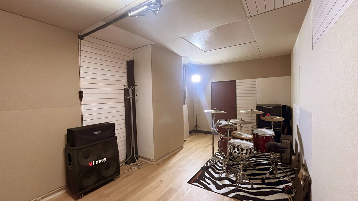 2017 - Studio de répétitions - Noisy le GrandEtude et réalisation complète : transformation d'un sous-sol d'une surface brute de 26 m2 en studio de répétitions musicales privé.